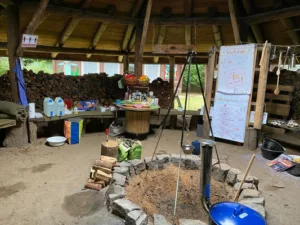 – In pointed huts on the grounds (overnight stay with your own sleeping bag)