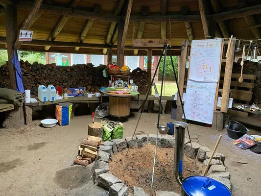 The location of the forest school in the middle of Pritzwalker Hainholz also provides access to an extensive local recreational area, including a forest swimming pool, a park of annual trees, a natural history museum, themed forest walking routes, and a petting zoo. Additionally, there is a hotel and a parking area for campers.